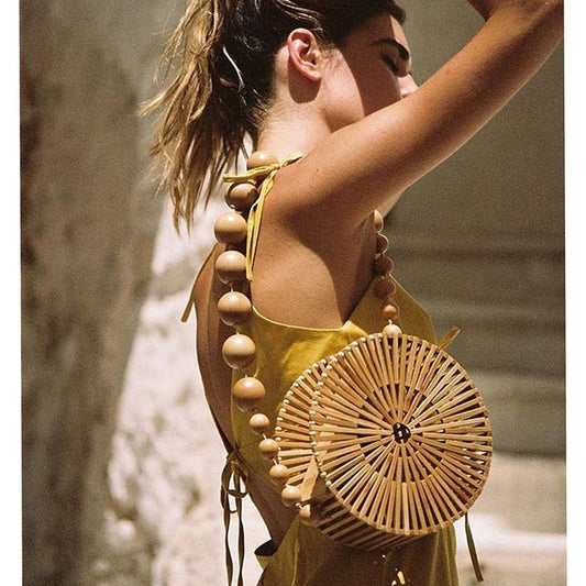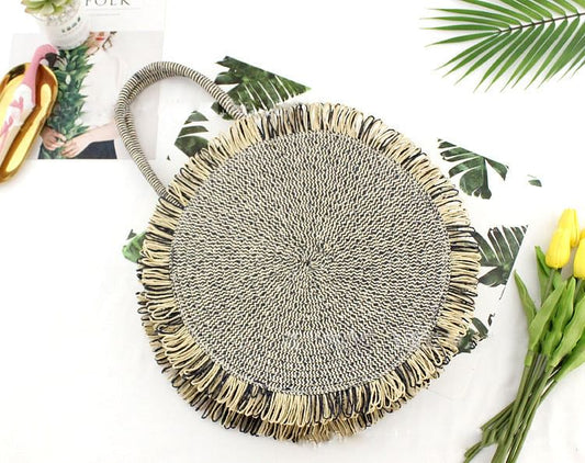 Round Summer Handmade Bamboo Bohemian Straw Hollow Rattan Woven Beach Bag for Women